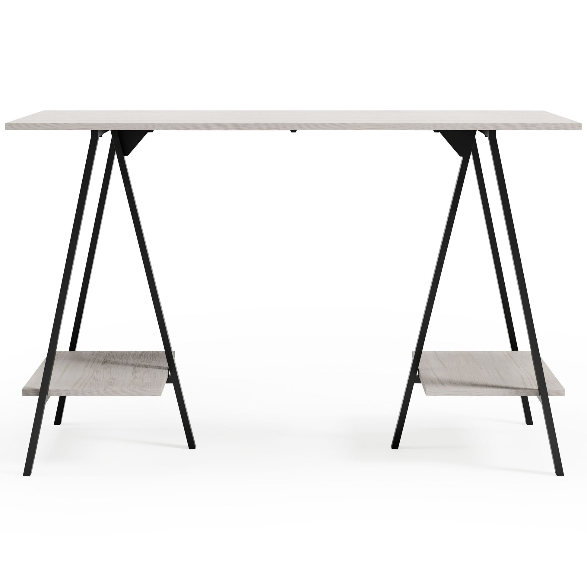 Love an urban farmhouse aesthetic? Make it work to your advantage with this beautifully styled home office desk. A simply striking choice in home office furniture, it has an unmistakable farmhouse feel thanks to a whitewashed finish and gunmetal accents. This minimalist-chic desk with open storage shelves and sawhorse legs gives you plenty of options when working on homework, doing art projects, or just relaxing.